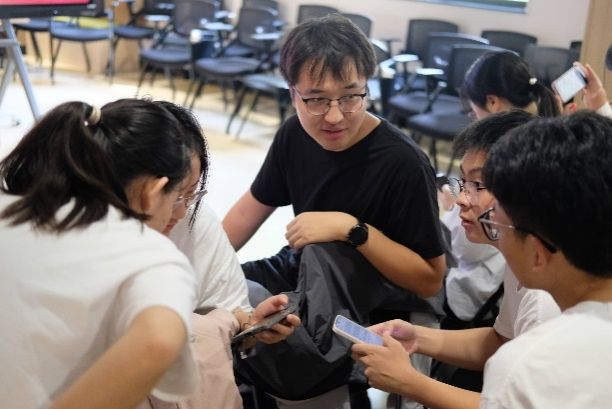整个活动分为“沙场救急”和“文物自述”环节,首先是在“沙场救急”模拟环节中,各小组依据“伤员情况清单”与“有限药材清单”展开紧张研判。一组同学抽到“腹痛伤员”案例后,围绕战时寒凉、饥饿、紧张等特殊环境因素深入分析,现场讨论既紧迫热烈又富有思辨性。教务部副部长方芳老师全程参与同学们的讨论,结合大家的推理过程,以亲切易懂的语气示范腹痛分析的基本思路,从疼痛部位定位到环境诱因排查,再到有限药材的合理选用,一步步引导同学们理顺临床判断逻辑。辅导员师延泽老师也全程陪伴,与同学们一同查阅资料、交流思路,在推理关键节点提供精准提醒,让整个模拟体验既连贯顺畅又生动深刻,思路被点亮和梳理的同学们露出轻松笑容,现场师生互动氛围愈发融洽。