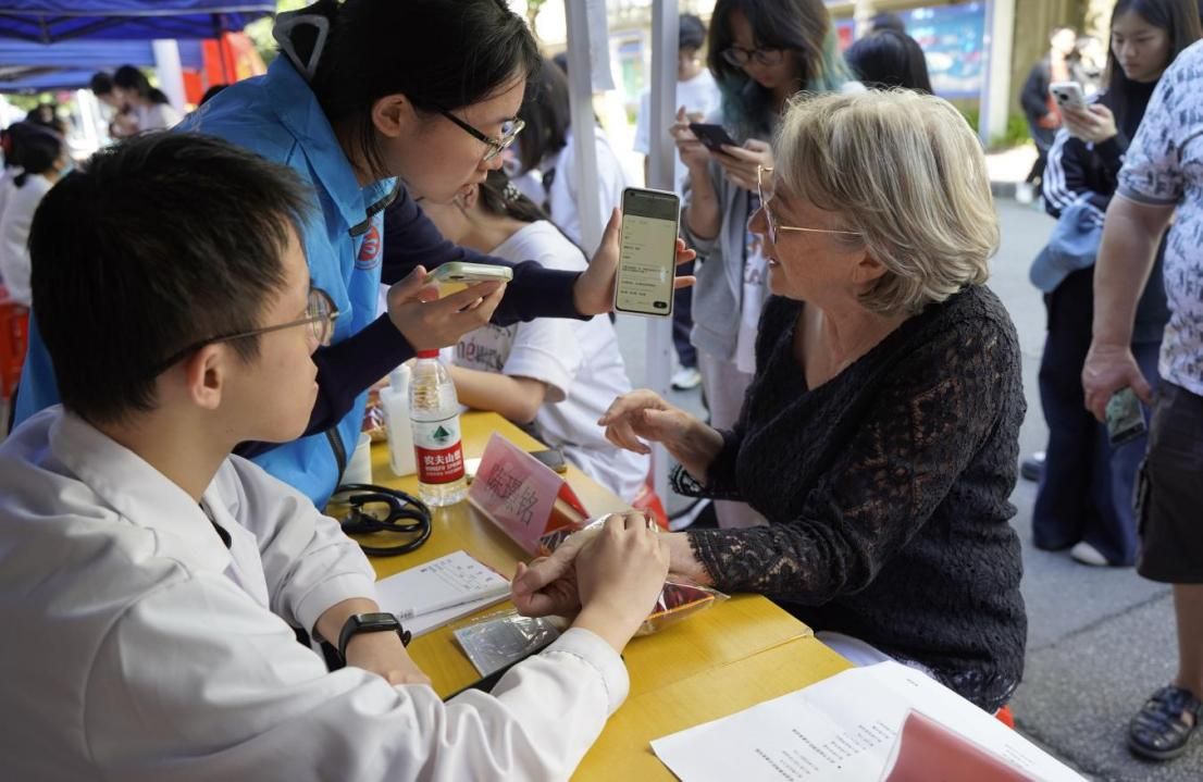 此外,在广大的专家坐诊过程中,一对法国夫妇特意前来体验义诊。虽语言不通,志愿者仍热情接待,借助翻译器耐心解释脉象所反映的身体状况,并给出养生建议。夫妇二人频频点头,在离开时竖起大拇指,对医生的专业与志愿者的友善表示赞赏,这成为活动中一段跨越文化的温馨一幕。
