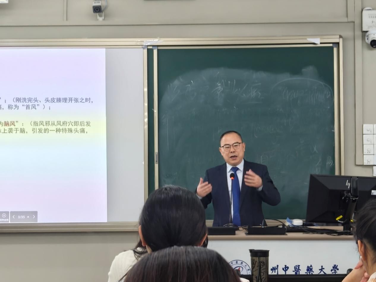 课上授课传薪火,启思拓维明方向。作为本次中医内科学 “头痛病篇” 的授课老师,杨院长凭借深厚的学术造诣与丰富的临床经验,为同学们呈现了一堂深入浅出、干货满满的精品课程。他以时间为脉络,追溯头痛病的历史沿革;以辨证为核心,拆解诊断要点的关键逻辑;以临床为导向,详解辨证论治的思维 路径与治法方药的灵活运用;以各家学说为延伸,碰撞中医理论的智慧火花。授课过程中,杨院长尤为注重引导长学制学子养成独立思考的习惯,不断抛出启发性问题,鼓励同学们跳出固有思维框架,拓展学术视野,培养独立思维。课堂上互动氛围热烈,同学们在问答交锋中深化对知识的理解,在思维碰撞中明晰学习方向。