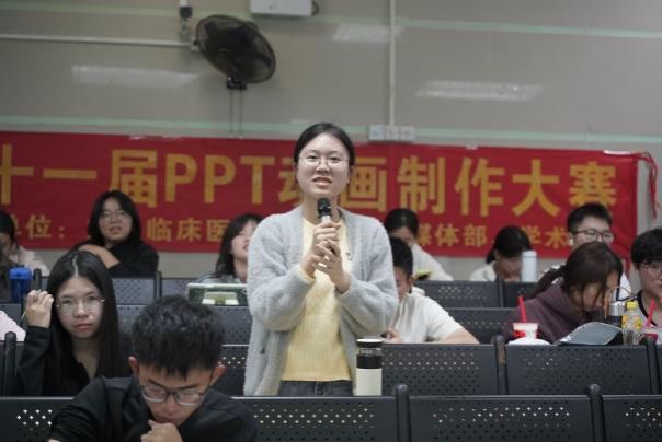 2025年12月4日,第一临床医学院第十一届医学科普PPT动画制作大赛决赛于大学城校区综合楼103课室举办。本届决赛邀请到一院学生团委副书记何诗诗、学工办南海伦、何欢、樊睿老师,与一院学生会成员一同作为评委为选手评分。