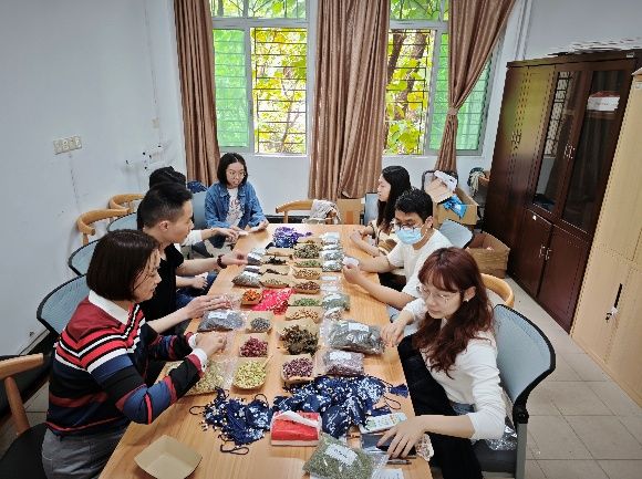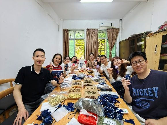 活动当天,景泰文化广场驿站暖意融融,支部党员博士们早早抵达现场,有序布置义诊点位、摆放宣传资料、调试测量仪器,迅速进入服务状态。为更好地传递中医药养生理念,支部还特意组织党员提前制作了中医特色香囊,香囊内填充艾草、薄荷、陈皮等天然中药材,兼具安神、理气、驱蚊的功效。活动现场设置了义诊诊疗、健康咨询、血压测量、养生科普四个服务区域,分工明确、秩序井然,吸引了周边众多居民前来参与。