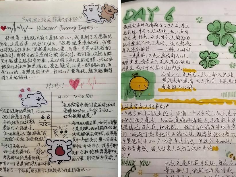活动期间,志愿者们坚持每天撰写志愿日志,记录当天的见闻与感悟。有的同学写道,通过这次活动,自己对医学人文有了更深的理解;有的同学表示,和患者面对面交流,让自己更清楚未来从医的方向。这些日志既是活动记录,也是医学生成长的重要见证。