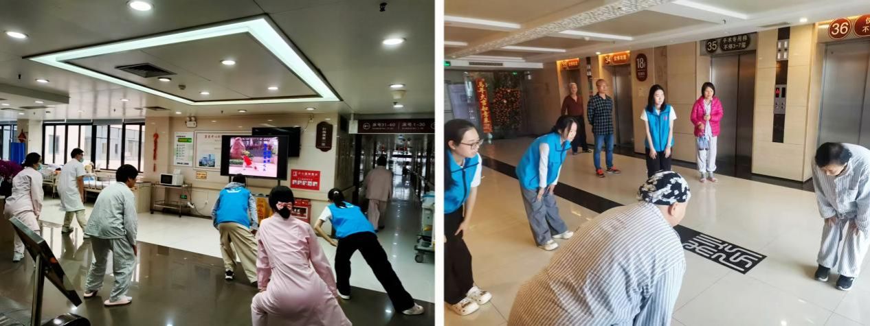活动期间,志愿者们在病区组织八段锦练习活动。八段锦是中国传统健身气功之一,以八式舒缓动作为核心,调和气血,强身健体。志愿者们提前熟悉动作要领,带领患者一招一式练习,讲解每个动作的养生作用。一些患者一开始不愿活动,到后来主动参与,精神状态也有了改善。志愿者们还在练习间隙向患者介绍中医养生常识,帮助大家树立健康生活理念。