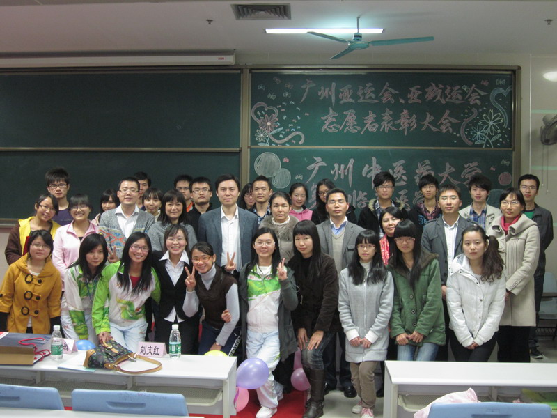 3月16日晚上6点30分,广州中医药大学第一临床医学院广州亚运会、亚残运会志愿者表彰大会在大学城综合楼405教室隆重召开。到场嘉宾有第一临床医学院党委副书记郭文海、校团委副书记范春、第一临床医学院团委书记叶升鑑、副书记邱敏、第一临床医学院学生工作办公室刘文红老师、何丽老师、黄晓其老师、张晋老师和校学生会以及各兄弟学院的学生会主席。本次表彰大会由第一临床医学院学生会副主席姚晓燕主持。