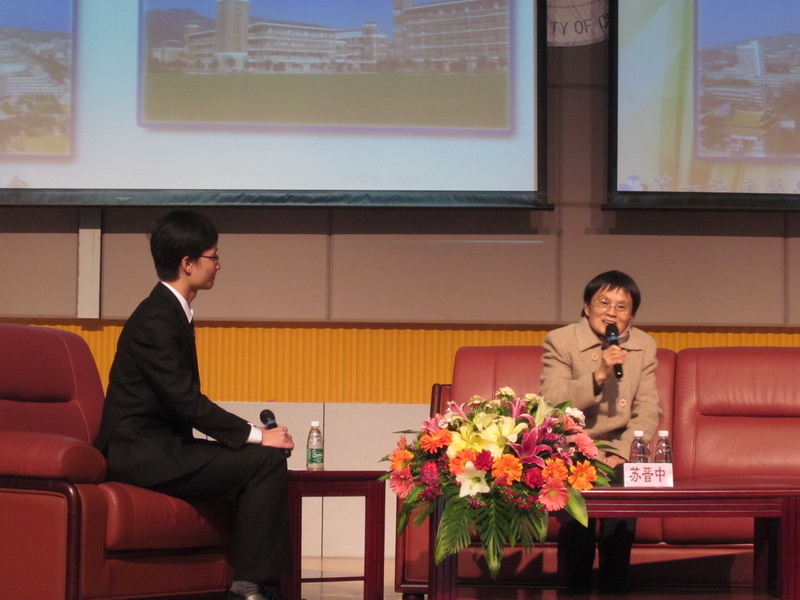 在与主持人交流的过程中,苏女士谈到自己立志求学时选择了工程专业,上岗奋斗时成为了普通工人,以及后来从科技工作者转入政界担任人大代表,种种职业的选择,都主要是站在了社会需要的高度做出的。对此,有同学提出疑问,作为大学生该如何定位当代社会的需要。苏女士认为,只要做好本职工作就是满足社会需要。