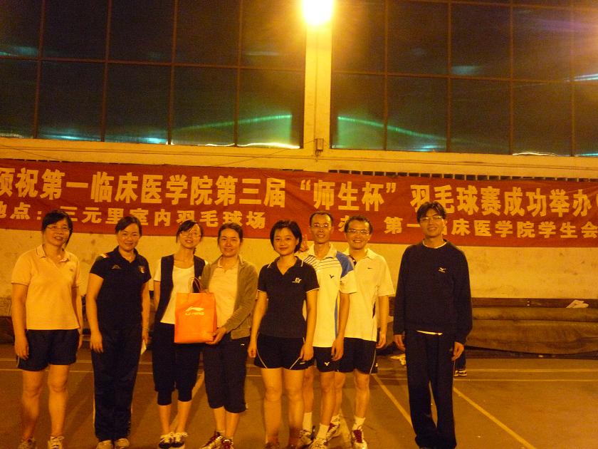 4月9日,第一临床医学院第三届“师生杯”羽毛球赛在三元里校区室内羽毛球赛场开锣,参赛队伍包括三元里各个年级和一院教工队,教工队主体由教学处老师组成,党委副书记郭文海,团委书记叶升鑑参加了比赛。