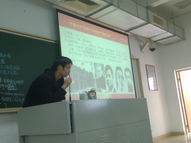 2011年3月24日上午,年级团支部根据上级关于建党90周年主题教育活动的文件精神,在A209课室组织了重温党史的团日活动,全体党团员怀着“学党史、颂党恩、跟党走”的积极态度,一起重温了党走过的轨迹和历程。