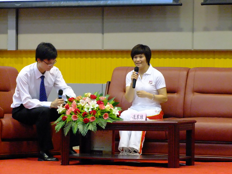 2011年4月25日晚7点,大学城的国际会议厅座无虚席,奥运冠军冼东妹作客一院精英论坛,与在场四百多名同学就 “挑战自我,永不言弃”的主题进行了面对面的交流,畅谈了她成功背后的酸与甜。第一临床医学院党委副书记郭文海以及一院团委、学生工作办公室的各位老师也出席了本届论坛。
