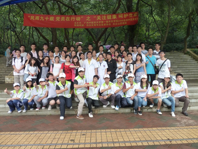 2011年是中国共产党建党九十周年,亦为辛亥革命100周年,建国62周年,广州中医药大学建校55周年。9月25日上午,广州中医药大学第一临床医学院08本科中医党支部联合白云山管理局、白云区青年志愿者协会在白云山举办了“关注健康,呵护生命”的活动。举办此次活动以突出党员与志愿者们全心全意为群众服务的宗旨;在弘扬十七大精神的同时,向群众宣传中医药文化,推广保健养生知识,从而增强中医药的在全社会的影响力度,使祖国医学得到更好的传承和发展。