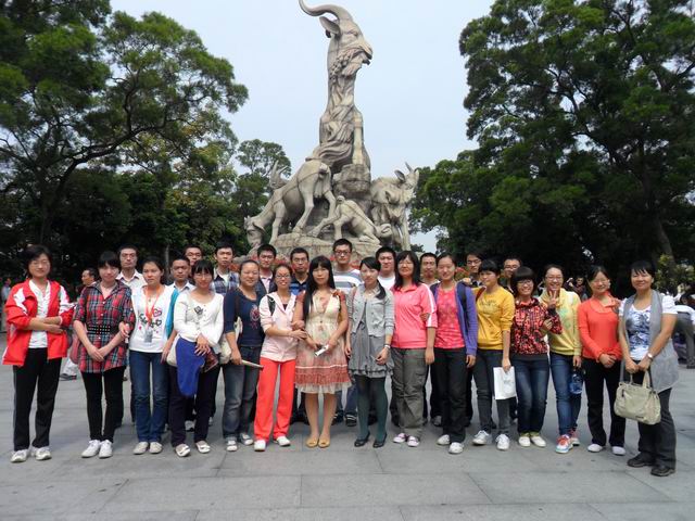 最后,全体新老生在五羊雕塑下合影留念,见面会在大家笑声和不舍中圆满结束。