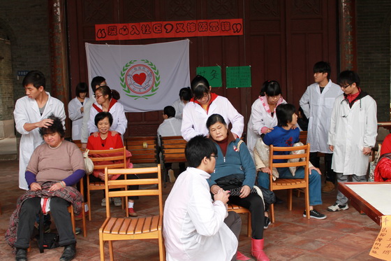 第九组的同学携手“第三临床医学院爱心义工队”走进社区,深入群众,为土华村村民推拿、艾灸、测血压等,缓解或解决了他们一些身体上的不适。这不仅为当地群众带来了方便,也锻炼了同学们的实践动手能力。当地群众给予了同学们很高的评价,对义诊活动亦表示支持,并希望类似的社区服务活动以后能定期开展。
