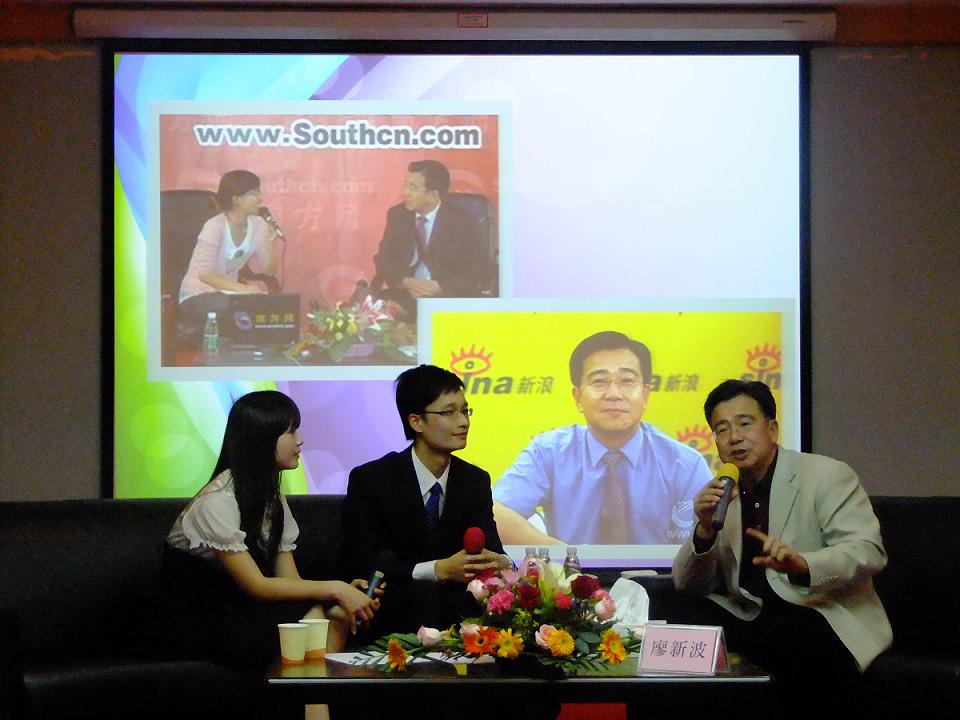 论坛以访谈的形式进行,廖厅长与两名学生主持人同坐在舞台上,接受现场访问。活动获得了新浪微博的赞助,现场的投影实时显示观众发的微博。第一临床医学院党委书记古展群、党委副书记郭文海以及学生工作办公室全体老师出席了本次活动。