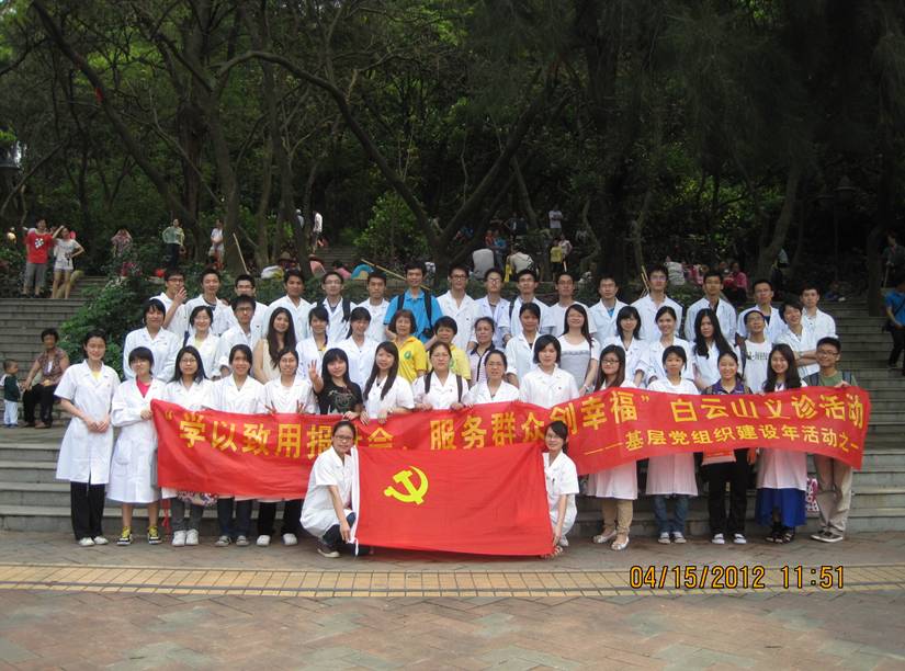 为了贯彻落实广东省委十届八次全会提出的建设“幸福广东”精神,进一步落实科学发展观,全面提高中医专业学生党员的实践操作能力,增强弘扬中医中药文化的使命感与责任感,为此,巧借五四青年节之契机,第一临床医学院08中医党支部举办了以“学以致用报社会,服务群众创幸福”为主题的系列活动,并在白云山管理局精诚协助下,于2012年4月15日在白云山柯子岭门举办此系列活动之一子活动——白云山柯子岭门义诊活动。