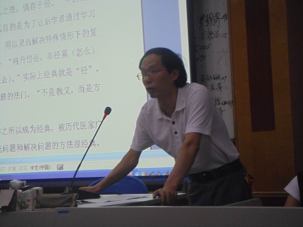 首先,第一临床医学院学生会主席吴鉴涛介绍了本届学生科技学术月的特色活动。接着,内分泌科主任朱章志教授为大家做了经典晨读动员。朱教授通过幽默诙谐的语言,分享了自己年轻时学习的经验。朱教授首先跟大家点出了经典的“永恒之美”、“含蓄之美”、“婀娜之美”及“推演知新”,再引导大家学习经典,背诵经典。朱教授还引用了王国维的诗词来形容为学之路的三个境界,鼓励大家学好知识,最终达到“灯火阑珊处”的境界。接着,郭文海副书记应邀为学术系列活动开幕致辞。郭书记指出:学生科技学术系列活动是第一临床医学院的品牌活动,通过五届活动的开展,带动了中医学子学习中医的热情。郭书记介绍了附院有关科室经典回归临床的情况,并鼓励同学们学好经典,为学习临床打好基础。