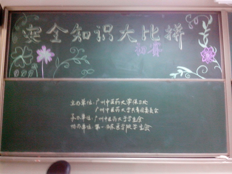 2012.11.2晚7:00,我院在综合楼201,202举行了第四届校园安全文化节之校园安全知识擂台大比拼活动。近年来,同学们的安全防护意识越来越淡薄,各种盗窃,诈骗等事件,安全事故频发。举办此次活动是为了进一步激发同学们对安全知识的兴趣,提高我院同学的安全防范意识,增强各种自救、他救的能力,营造健康良好的学院氛围。本次活动活动由广州中医药大学保卫处,广州中医药大学共青团委员会主办,由广州中医药大学第一临床医学院学生会协办。