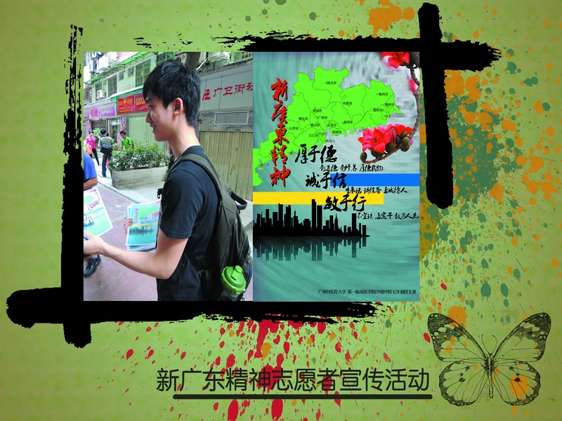 三元里校区方面,08七团支部通过主题名为“汲取.传递”的团日活动,开展了“纸片传情”互赠祝福,传递爱的能量。“流动图书馆”自荐书籍,与全校师生交流读书感悟,为青春助力;09七团支部围绕主题举办了:“一站到底”新广东精神知识竞赛,并通过自编视频扩大了广东精神的宣传;09中医本科团支部开展了名为“秋日情香满南粤 , 千里躬行索正源”的团日活动,用视频捕捉生活中的正能量,自编自演了广东精神宣传片;采访班级辅导员、同学、师弟师妹等,了解大众对广东精神的理解及祝福等;09中西医团支部则用涂鸦的形式表现对正能量的理解,通过革命烈士故事的演绎,汲取向上的能量;10中医七团支部参观广东省博物馆,增强对广东的了解;10中医五团支部开展了“朝阳伴爱护夕阳,厚德博学献青春”之慰问孤寡老人,用一颗颗年轻火热的心温暖他人;10中西医1团支部在大夫山上用青春活力印证了“正能量”;10中西医2团支部与华南农业大学外国语学院联合开展“将爱延续”活动,体验了合作交流的重要性;越秀山下,10中医实验班团支部开展丰富多彩的课外活动,唱着歌,将正能量寄于悠扬的曲调之中。