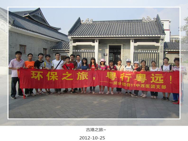 大学城校区方面,11中医七团支部在药王山和广东中医药博物馆度过了愉快的时光;同样将焦点落在了身边,还有11中医5团支部和11中医实验班团支部,前者在这秋燥的时节里,给老师们们送上了滋润的雪梨,后者举行感恩义诊,为每天默默在我们身边为我们操劳的环卫工人和保安们推拿按摩,真正做到“敏于行”;而11中西医团支部立足于“环保”理念,给路人派发宣传环保知识传单,以小见大反映广东精神;12中医1团支部在越秀公园发起重阳登高敬老活动,再次演绎了中国敬老爱老的传统美德;12中医2团支部以及12中西医团支部在运动场上挥洒汗水,每一次雀跃欢呼都应和着无数迸发正能量的心跳; 12中医实验班的同学别有新意,到中心湖去来了一场真人象棋大赛,通过创新文化熏陶的形式,感悟正能量带给我们的积极向上的动力。