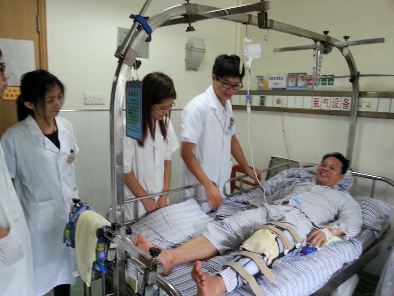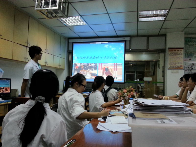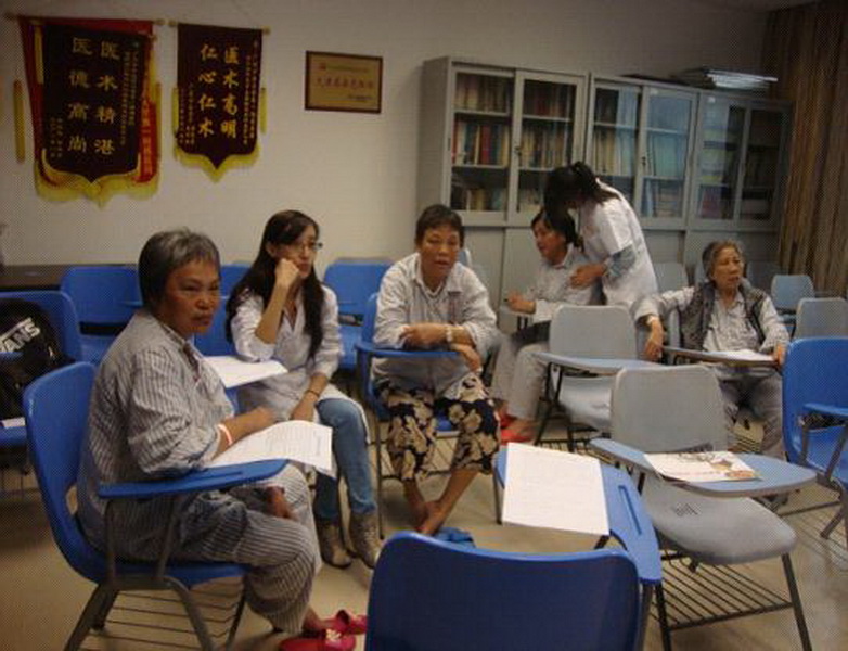 四骨科志愿分队成员们耐心协助病人进行各种功能肌力康复训练;而内分泌志愿分队们则利用多媒体给病人讲授一些日常常见疾病的预防措施,以及糖尿病的日常饮食注意事项;