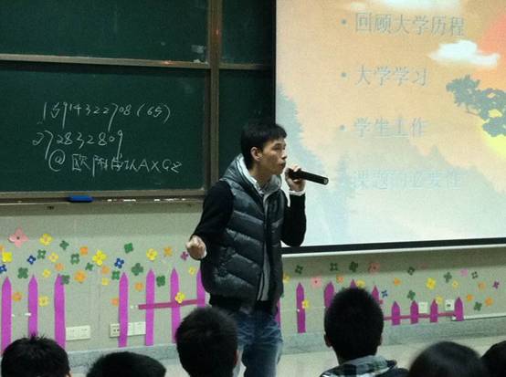 【一院讯】2013年1月16号晚上,一场别开生面的科研学术交流会在综合楼105热烈进行,11中医本有幸邀请到三位在科研学术领域上有出色表现的师兄来与我们交流,他们分别是曾获得挑战杯省级金奖的一附院内科医生蒋川,曾获得校学术论文大赛一等奖的梁锐以及在院科技创新课题答辩中获得社科类第一名的欧阳学认等三位师兄。