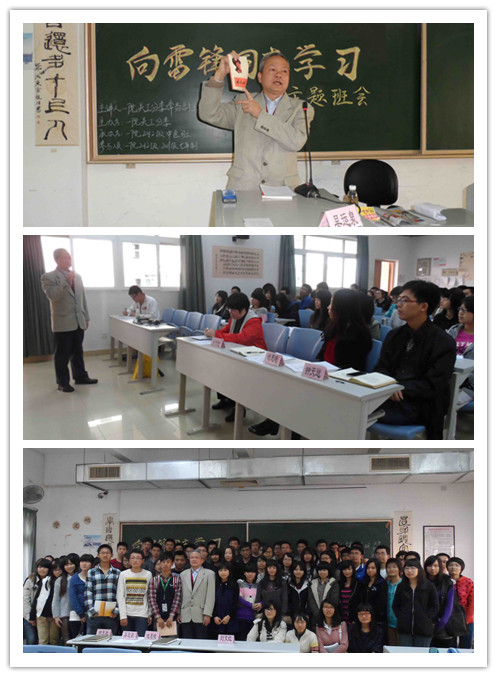 【一院讯】1963年3月5日,毛泽东主席“向雷锋同志学习”的题词在人民日报发表,该纪念日由此而来。转眼半个世纪过去,值此学习雷锋纪念日五十周年之际,为了鼓舞一院同学学习雷锋精神的热情,为3月学雷锋系列活动开一个好头,2013年3月5日下午4:40,由第一临床医学院关工分委主办,12级中医班承办,一院关工分委常务副主任、前颅脑科副主任吴运泉教授主讲的“向雷锋同志学习”主题班会在教学楼A302正式举行。一院2011级中医学七年制以及2012级中医学本科班共近百名同学前来听讲,学工办主任钟天送老师、学工办刘文红老师、池思晓老师出席了此次主题班会。