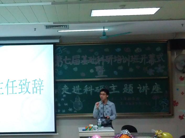首先是钟天送老师为我们简短的回顾了一院2012年学生的科研学术成就及上届科研培训班的成果,并且为同学们介绍了本届科研培训班的目的主要是鼓励低年级同学通过参加基础科研培训,亲身体会到科研以及论文写作能力的重要性并掌握相关的科研能力。活动不仅能丰富同学们的课余生活,为同学们以后的科研活动和论文写作打下扎实的基础,为我院的科研工作储备人才。另外,本次基础科研培训班新增了标书点评环节,让同学们有机会与科研名师面对面地进行学术问题的探讨。