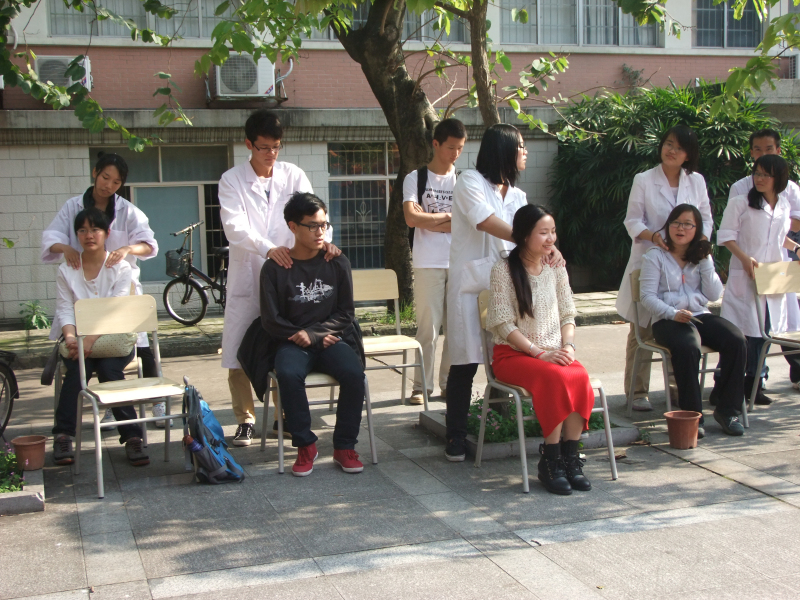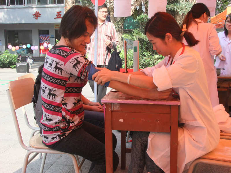 阳光穿过嫩绿的新叶洒满会场,“嘉年华”现场劲歌靓舞、色彩纷呈,广州中医药大学第一临床医学院那一片“白色”显得格外庄重肃穆,属于天使的颜色,光芒难掩。中山大学的学子禁不住对传统中医药文化的好奇,聚集在我院摊位前,争相体验“推拿”、“艾灸”、“贴耳穴”、“拔火罐”等中医特色项目。从最开始对艾条、耳贴和火罐的一无所知,到接受中医保健服务后筋骨舒畅,再到疲渴时随手捧起一杯花茶,传统中医药文化悄悄渗透进了中大园,受到了中大学子的诚心赞赏。另外,还有一处风景断不能忽略——大一就读于中大南校区的我院12级广中医七年制的学生活跃在会场,他们体验每一项义诊服务,参与中药药名和药性特点的竞猜,其中有一名12七的男生,可以回答全部竞猜问题,师兄师姐爱才心切,将中医药知识的竞猜资料赠送给他,同时引来同行校友6名,一起受感于欢乐的嘉年华氛围。我院志愿者闲暇时候积极走访各个摊位,欣赏生命科学学院学生活动的魅力,并积极发展校际友谊,不少志愿者还捧回生命科学学院的“种子计划”所派送的种子与花盆以作纪念。