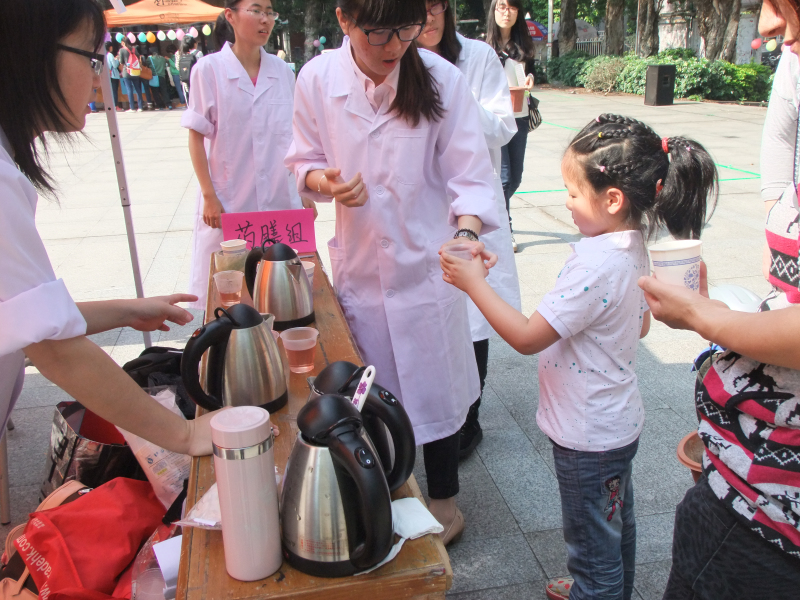 4月14日下午,我院学生分团委与院学生会应中山大学生命科学学院学生会邀请,派出19名志愿者到中山大学南校区“达尔文生物嘉年华”会场进行科普宣传及基础义诊活动。