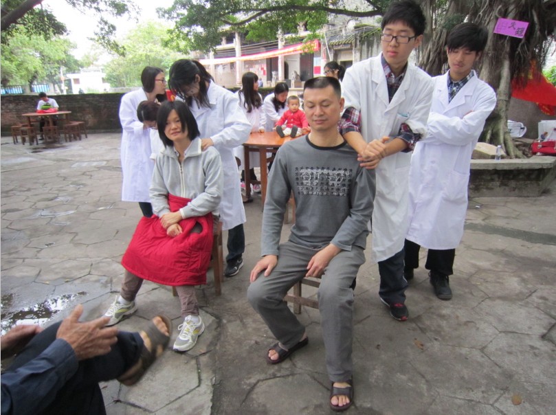 到达南亭村后,同学们积极进行准备活动,走过的村民也开始慢慢聚焦到我们的活动地点来。公公婆婆们得知我们来进行义诊活动后,纷纷称赞我们。随着时间的推移,越来越多的村民参与到我们的活动中来。同学们主动热情地与村民们交流,为村民们提供量血压、推拿、艾灸等义诊服务。