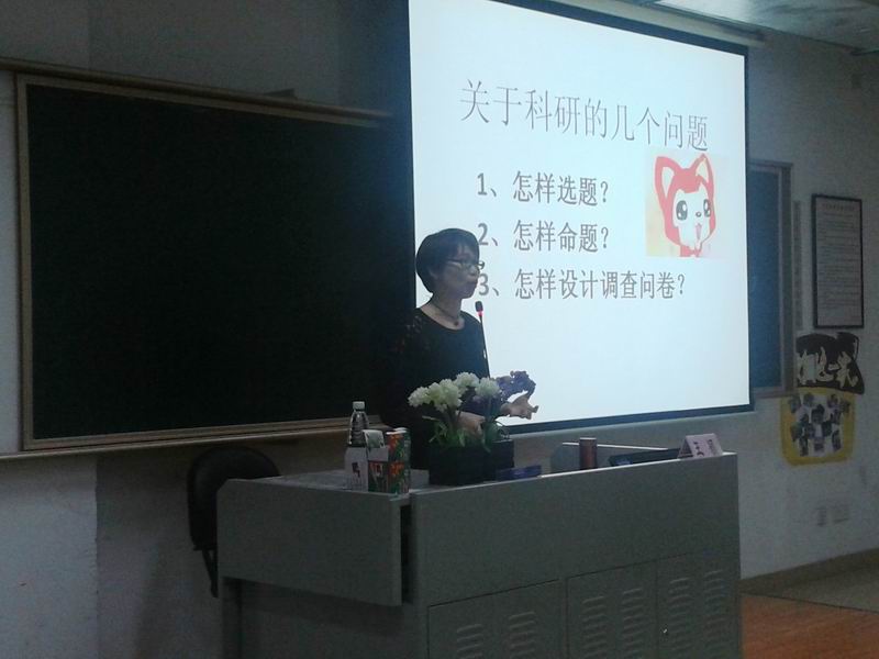 王颖老师从“怎样选题?怎样命题?怎样设计调查问卷?”三个方面为同学们详细的讲解了论文的书写规范,并且通过一些具体的题目,令同学们对规范的论文书写有了更深的理解。她指出选题的最重要的依据就是同学们自己的兴趣,只有对一个课题有兴趣,这样才能坚持做下去,另外,课题要多放于社会的热点、讨论的焦点上面,充分体现课题的社会价值,宜小不宜大。同时,论文的命题一定要清晰明确,调查过程中设计的调查报告的目的要明确。在后来的提问环节中,同学们对在听课过程中产生的疑问向王颖老师提出了问题,通过老师详细的解答,解决了自己内心的困惑并且加深了对论文书写规范要求的理解,现场的同学们都对王颖老师精彩的解答报以热烈的掌声。