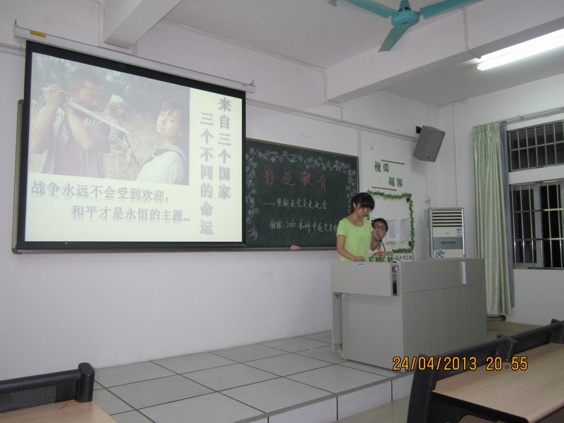 2013年4月24日,一院10本中医党支部开展了红色电影《紫日》的赏析活动。晚上七点整,三元里校区综教楼309已洋溢着同学们的笑声与对电影的期待,不论学生党员,还是入党积极分子,都积极参与到活动中。
