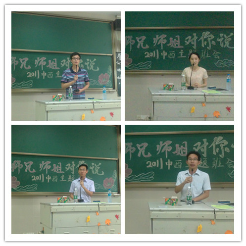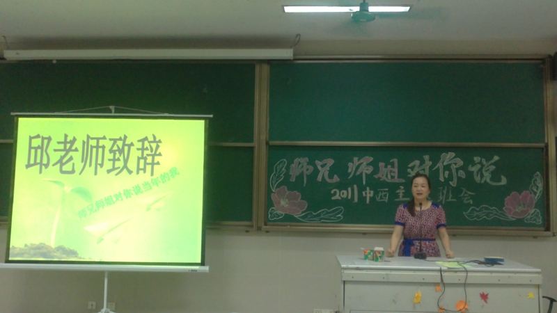 “看到现在光彩夺目的你们,我感觉很自豪。师兄师姐说的一切,就是要大家把握当下,认清目标,努力奋斗。”11中西医辅导员邱敏老师在该班5月25日15点举行的“师兄师姐对你说当年的我”主题班会上总结如是说。