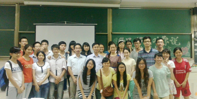 莅临本次班会的有现任广东药学院第三附属医院中西医结合科医师凌宏礼师兄、广州市博硕咨询策划有限公司项目主管吴耀盛师兄、第一临床医学院硕士研究生彭明欢师姐、第一临床医学院内科医师蒋川师兄,以及11中西医班辅导员邱敏老师和全体同学。班会伊始,师兄师姐陆续地介绍了自己求学以及工作经历,让同学们看到了不同的人生路线,也让同学们明白了不同的追求能成就不同的精彩。师兄师姐讲述着各自的大学生活,感慨与趣味同在,形象生动地勾勒了一幅幅不一样的青春,赢得了台下热烈的掌声。