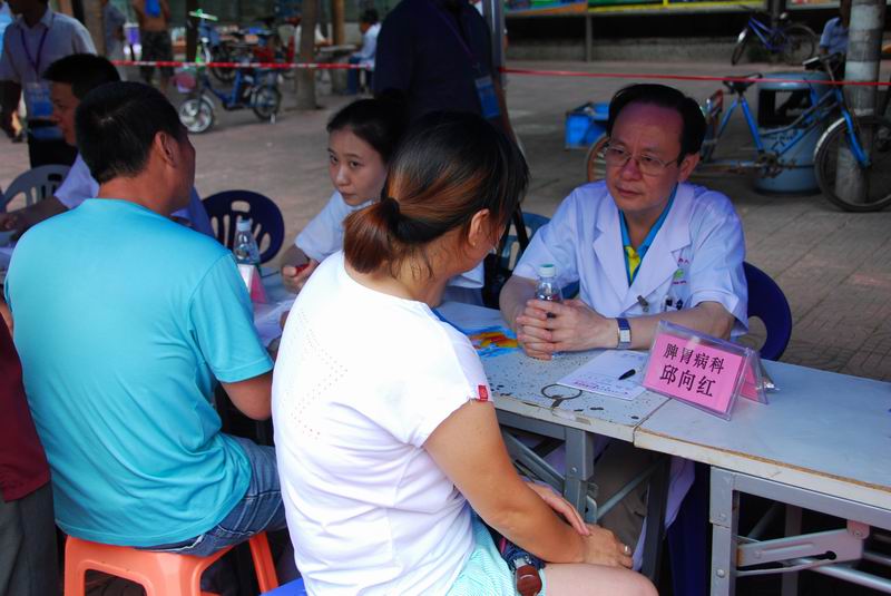 上午9:00,义诊刚开始,群众们就闻讯而来,熙熙攘攘挤满了广场,纷纷向医生咨询各自的问题。10:30时,在古朴传统的八段锦表演后,石楼镇党委委员伍清文同志和院党委郭文海副书记先后致辞,挂牌仪式正式开始。华丽的舞台布置,动听的乐队音乐,贴心的志愿引导,多样的服务项目,专业的医师咨询,受到群众们的交口称赞。在番禺电视台的现场采访中,石楼镇党委委员伍清充分肯定了我院志愿服务队为海鸥岛居民所作的贡献,希望我们继续加强合作,为当地群众带来更多的志愿服务。院党委郭文海副书记也衷心感谢石楼镇对我院社会实践工作的大力支持,希望通过挂牌后建立更加密切的合作关系,为当地群众提供更好的医疗服务,为学生提供更多的锻炼机会。