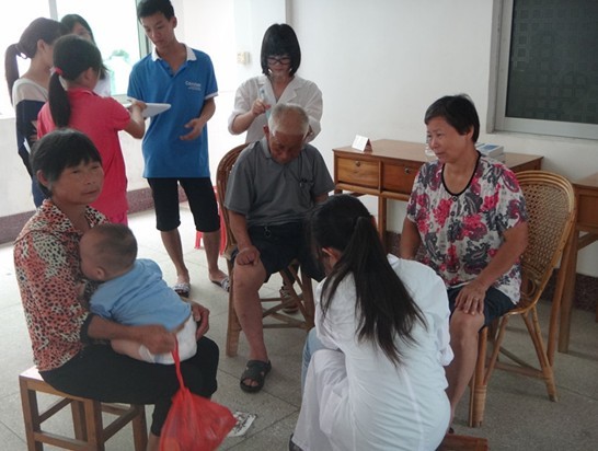 2013年7月15日早上,在广中医大学城生活区装载着一支热情洋溢、朝气蓬勃的队伍的汽车徐徐发动,拉开了为期七天的“涌动河源,筑梦上义”三下乡之旅的帷幕。经过了三小时多的路程,大家来到了四面大山环绕、稻田飘绿的河源上义镇,受到了当地领导的热烈欢迎。当天下午便在当地计生服务站开展了服务村民的义诊活动。活动过程井然有序,村民们在服务站门口排队等候挂号,然后在下乡队伍的队员引导和陪同下进行量血压、诊病、拿药。来义诊的村民络绎不绝,一位当地老婆婆对下乡队员竖起大拇指,赞:“大学生关心农村、关心农民,好!”