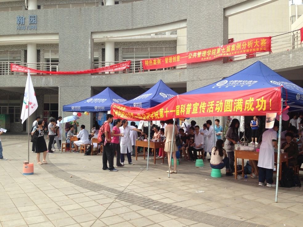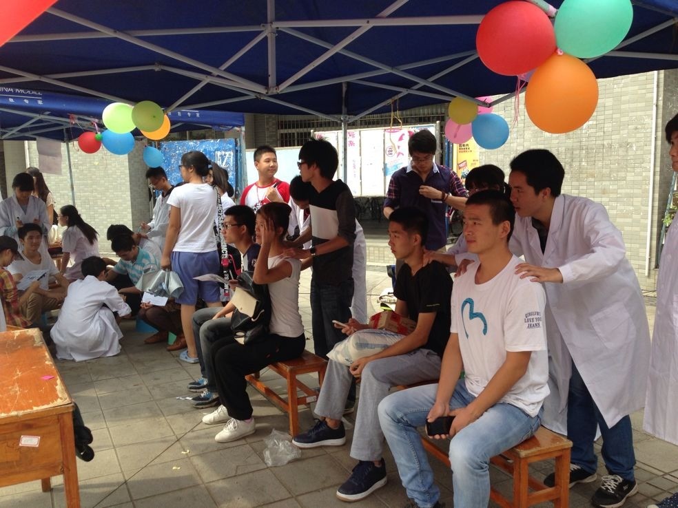 2013年11月2号,在一个秋高气爽的日子里,2013级中西医的几十名同学来到华南师范大学的翰园广场,给华师的学子们带来一次极具意义的科普宣传活动。
