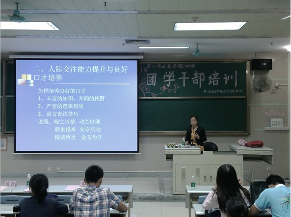 为提高我院团学干部的理论素养和工作水平, 2013年11月06日,我院学生分团委、学生会在大学城校区综合楼302举行了团学干部培训开幕仪式暨理论培训第一场,特别邀请到我院学生分团委邱敏书记和学工办何丽老师为大家讲授公关礼仪和通讯稿写作的相关内容。
