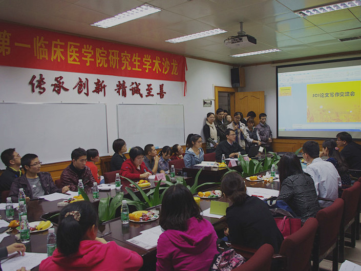 为了进一步提高SCI论文写作的热情与信心,营造互相学习、互相探讨、共同进步的良好学术氛围,第一临床医学院2013级博士班11月14日晚在大学三元里办公楼405会议室举办了第十期研究生学术沙龙暨SCI写作交流会。