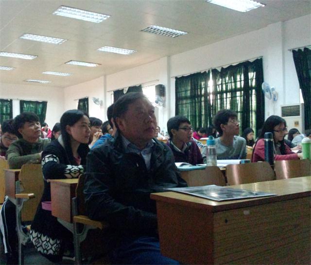 2013年12月8日下午,学校《新中医》编辑部主任兼总编辑郭桃美在辅导员陈文桂老师的陪同下来到三元里校区第六大课室,与一院2011级中医学专业同学一起听由方剑锋老师主讲的《伤寒论》课程,深入了解同学们的上课情况,并认真作了记录。郭主任听课后表示,同学们课堂纪律良好,学习气氛活跃,老师讲解深入浅出,让同学们容易领会。