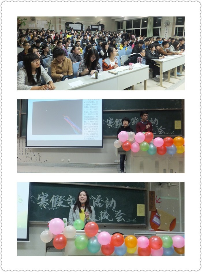 【一院讯】2014年寒假,第一临床医学院2012级中医班的同学们在欢庆春节的同时,用心捕捉着寒冬里的温暖,用笔和摄像头记录下了那些令人触动的瞬间。展示照片,分享心得,3月6日晚上7点,“记忆留驻,爱暖寒冬”12级中医班寒假主题活动分享会在综合楼104召开。年级辅导员池思晓老师出席了本次交流会。