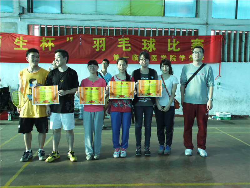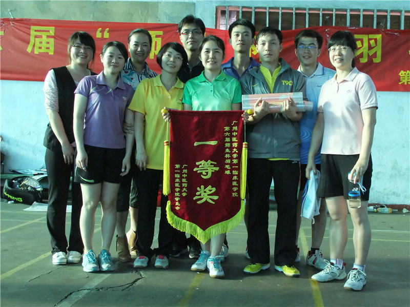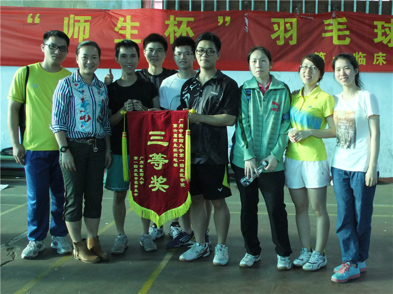 3月29日,第一临床医学院第六届“师生杯”羽毛球比赛在三元里校区室内羽毛球馆举行。参赛队伍共12支,分别为09中医七年制、10中医七年制、09中西医本、09中医本、10中医本、10中西医本、11中医本、11中西医本、学院老师代表队、新生代表队、研究生队和国际学院代表队。其中,大学城校区新生代表队克服困难,准时赶到三元里校区。我院党委副书记郭文海、学工办的老师以及一附院临床科室的数位老师作为学院老师代表队队员参加比赛。