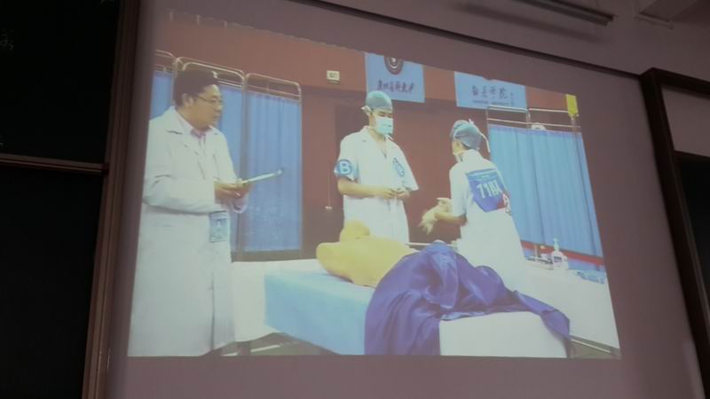 本次比赛一共有来自广东、广西、海南三个省的14支队伍参加,我院参赛队伍是唯一一支中医院校 代表队。开幕式后,各参赛队伍展开了紧张激烈的角逐。比赛形式分为赛站式和赛道式两种,赛站式共15个站,每个站要求参赛选手在6分钟内完成,各站又设有理论与操作考核,内容涵盖了内、外、妇、儿、骨、耳鼻喉、护理等多个学科的多项基本操作;赛道式即是赛道上分别有骨髓穿刺活检、心包积液穿刺、小肠吻合以及跟骨结节牵引等四个考核点,要求选手在20分钟内完成赛道的所有操作。在比赛中,我院选手一路过关斩将,最终荣获华南赛区三等奖,实现了中医院校在该项比赛中零的突破!