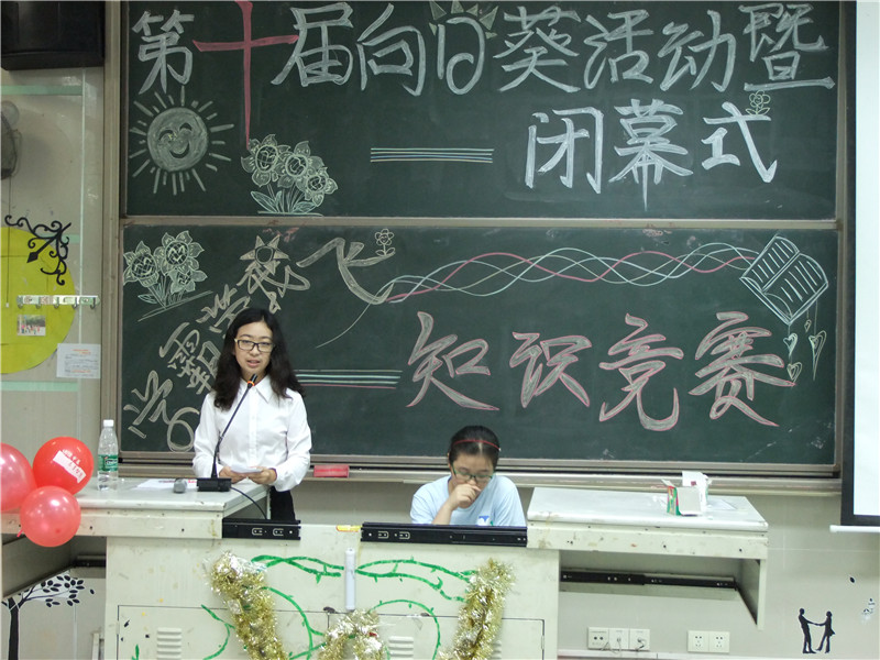 本次闭幕式分为三个环节:一是简单介绍向日葵活动并回顾本届后续活动,二是宣布优秀带领人名单,三是开展知识竞赛。在第一个环节中,在场学生在主持人的介绍和PPT放映下,回顾了做太阳或小花的历程,感慨万千。13级中医一班何颖贤、陈颖慧,13级中医二班张晶,13级中西医庄振杰、陈芝强,13级中实刘思琳,12级中实郑文江荣获优秀带领人称号,13级中医一班何颖贤代表优秀带领人上台演讲。最后,知识竞赛精彩进行。本次竞赛范围主要针对中基、中诊的内容,加入少量中药、方剂、生理、生化的题目。四支参赛队伍蓄势待发,通过必答题、选答题、疯狂答题、机智大考验以及最后一题的不同答题方式和不同试题的考验,角逐出前三名赢家。