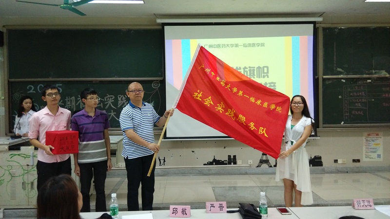 本次大会在回顾我院2014年暑期社会实践的视频中拉开了序幕,视频里记录了去年各支队伍为群众服务时的风采,展示了他们无私奉献的精神。大会正式开始,由钟天送主任和邱敏书记分别宣读了关于第六届“风信子”、基地下乡社会实践计划大赛项目立项的通知和关于2015年暑期“中医走进社区”社会实践的通知。宣读完,服务队代表从严晋副书记的手中接过实践旗帜和徽章,寓意薪火相传,一院学子积极参与社会实践的热情永不断。紧接着严书记用幽默的话语开始了动员讲话,鼓励同学们走出校门,走向社会这个更为宽广的大舞台。