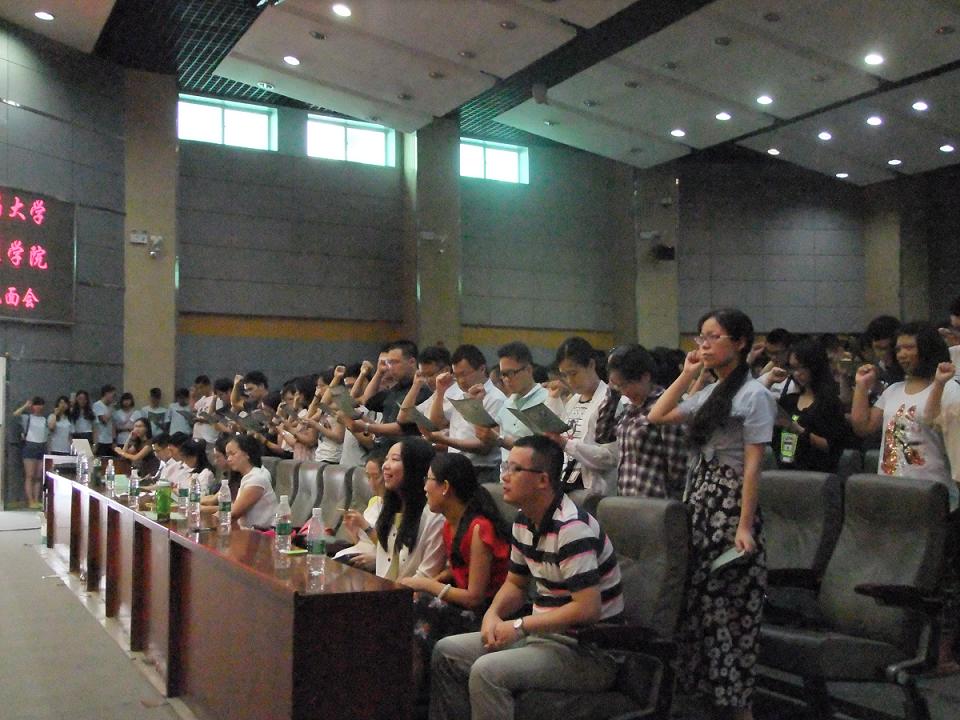 “健康所系,性命相托……”,在林丽珠教授的带领下,同学们满含激情地庄严宣誓,字字句句,铿锵有力,许下了他们对自己对未来的郑重承诺。最后,党委书记陈文锋向新生介绍了第一附属医院和学院的大致情况,并语重心长地告诫同学们要慎读、悟道、求思,送上了满满的祝福,也流露出对他们无限的期许。