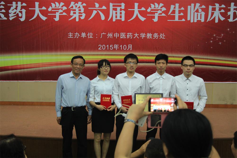 2015年10月24日,广州中医药大学第六届大学生临床技能比赛落下帷幕,由林文佳、林天烨、许伟贤、黄楚栓等组成的第一临床医学院代表队以优异成绩取得了第一名,这也是我院代表队连续四年获得全校第一名!由李明珠、黄远程、练鹏颖、潘思敏等组成的另一代表队取得了二等奖。