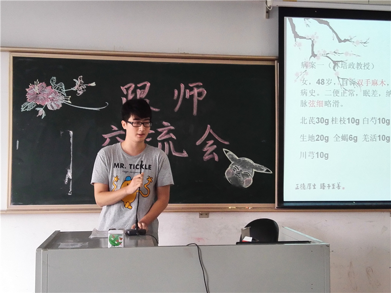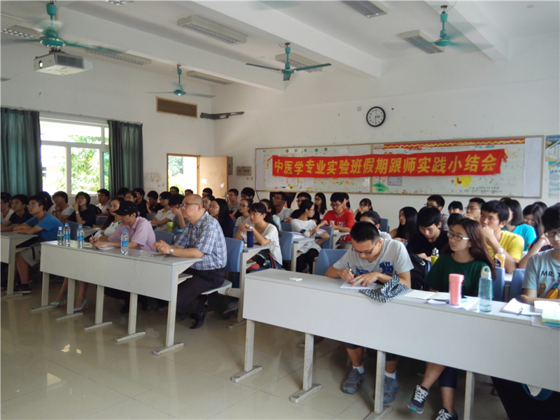 2015年10月30日下午3点半,第一临床医学院2014级中医实验班于教学楼A211召开了暑期跟师实践交流会。我院党委严晋副书记、学院办公室罗广波副主任,14中医实验班辅导员邱敏老师也莅临现场。交流会同时邀请了15级铁涛班的同学参加。