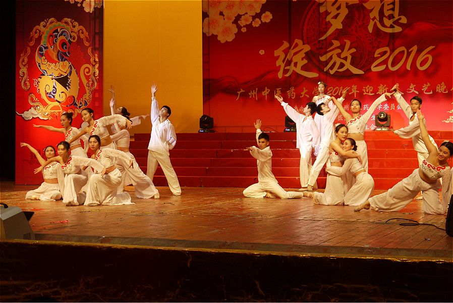 12月30日晚,“梦想绽放2016——广州中医药大学2016年迎新春文艺晚会”在学生活动中心大会堂隆重举行。学校领导黄斌、王省良、陈英华、张建华以及部分职能部门负责人、各学院学生工作负责人,与全校2000余名师生一同观看了晚会,喜迎2016年的到来。