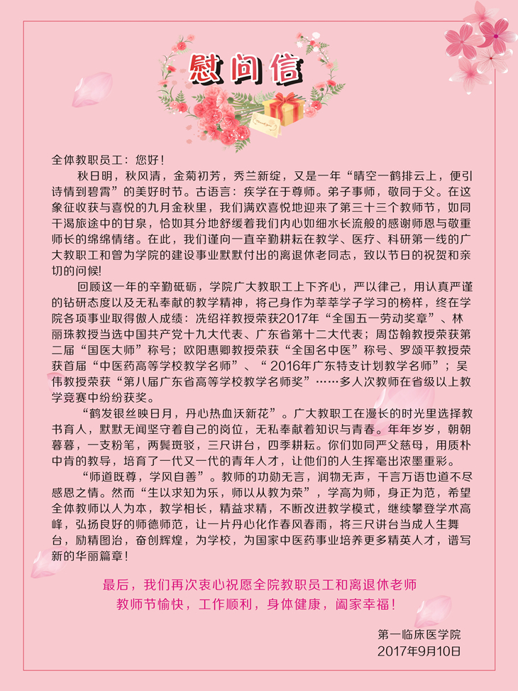 致全体教职员工的教师节慰问信