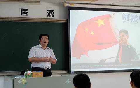 陈文锋书记为同学们讲授了以《学习党史,为中医腾飞作贡献》为主题的思政教育课。他从党的发展历程出发,并联系当下热映电影《战狼2》,将中国共产党领导下祖国的日益强盛、中医在党的发展史上发挥的重要作用向同学们娓娓道来。陈书记以党的发展为鉴引导在场同学要胸怀祖国、放眼世界,认为当今青年要关注社会、大胆尝试,“年轻人不要怕”、“中年人不要悔”;更是引导学生积极向组织靠拢,自觉爱党入党,依靠党组织同时不忘严格要求自己,珍惜难得的学习环境和机会传承好中医药。陈书记就党的发展又分析了当今中医发展的前景与不足,认为医路漫漫,要努力的地方还有很多,他鼓励学子为祖国医学的发展积极贡献力量。陈书记对在场的医学生寄予了高度期望,并就学习中医方面给出详实建议:从骨子里热爱中医、耐得住学医的寂寞、打好基础练好基本功、多读经典。他强调,医学核心在临床,临床核心在辨证论治,希望学生培养开放性思维,善于借助现代西医的手段。陈书记指出,在中医人获得国际奖项、中医药立法等社会背景下,当下中医药事业正迎来天时、地利、人和的大好发展时机,同学们肩上传承发展中医的担子也更重,他呼吁同学们要在党的发展指引下,利用自身优势认真学好专业,为未来中医药事业发展打下良好的基础。