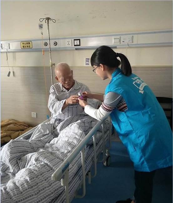 你们安静,你们疲累,你们难受,你们痛苦。你们承担着与别人不一样的痛楚,可你们依然懂得病痛不是惩罚,依然安然接受,从黯淡中寻找出色彩并长久地保持美丽的荧光。而我们只是小小的医学生志愿者,来到你们身边只祈能为你们带来一点点的帮助。